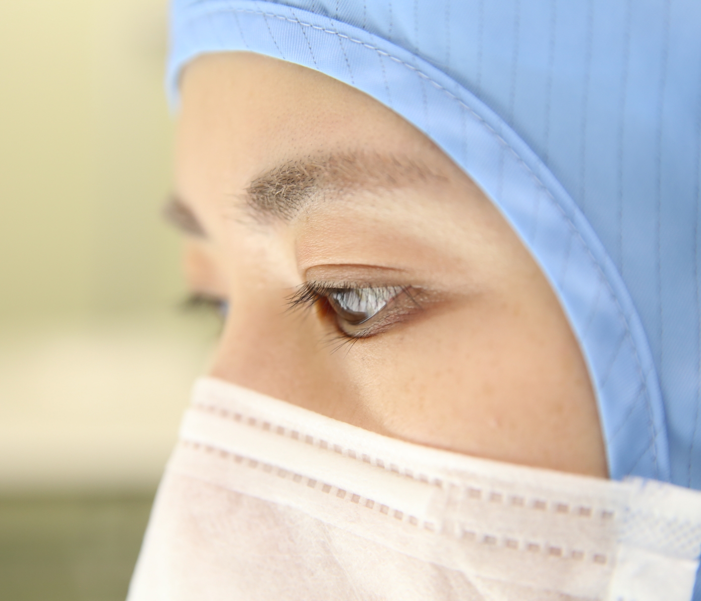 • クリーンルーム内にて、製品の状態を確認する検品を行っています。