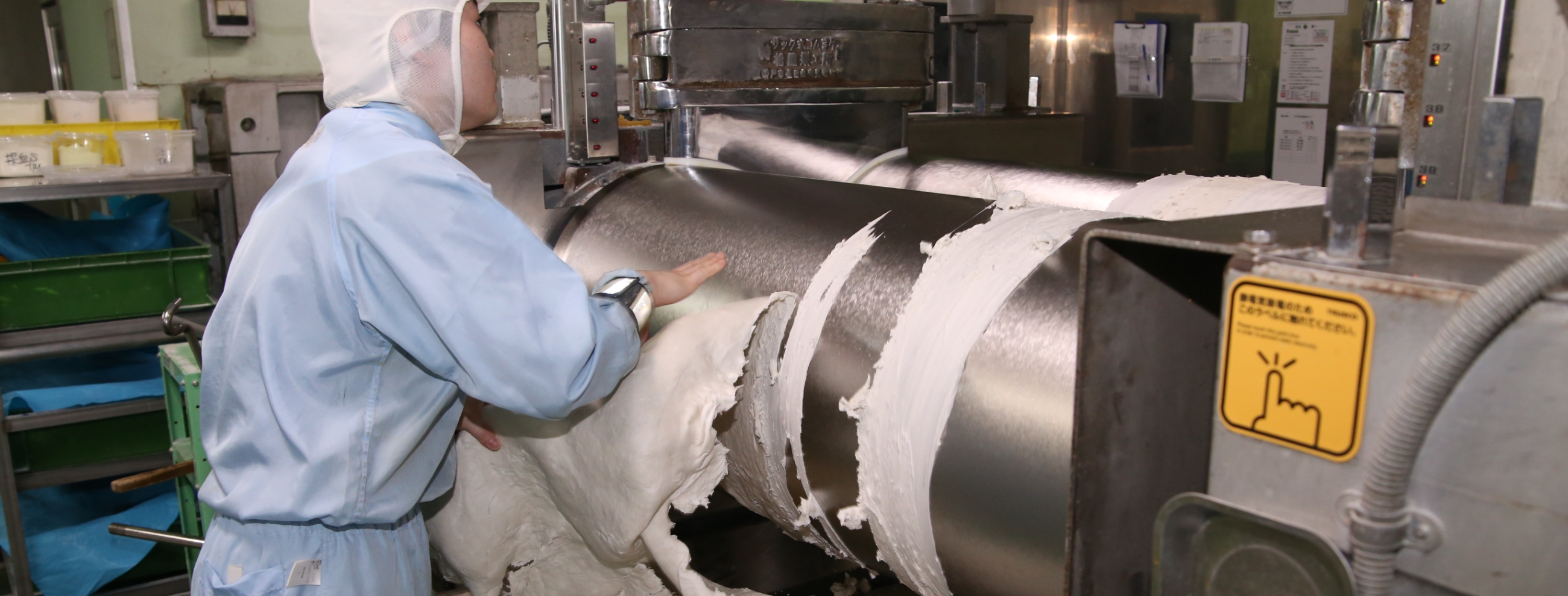 • 原材料ゴムは、定められた条件のもとロール工程で配合・練り込みを行っています。