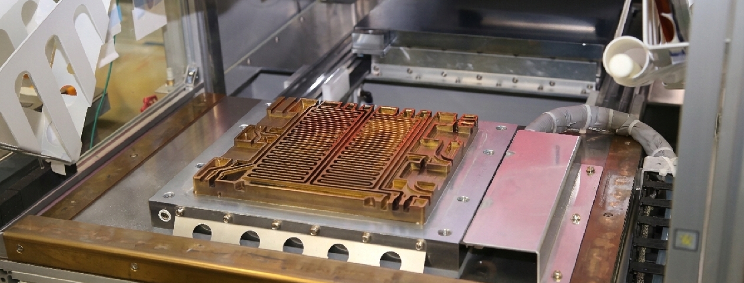 • 管理された環境下で、医療用途パネルの接着工程を行っています。